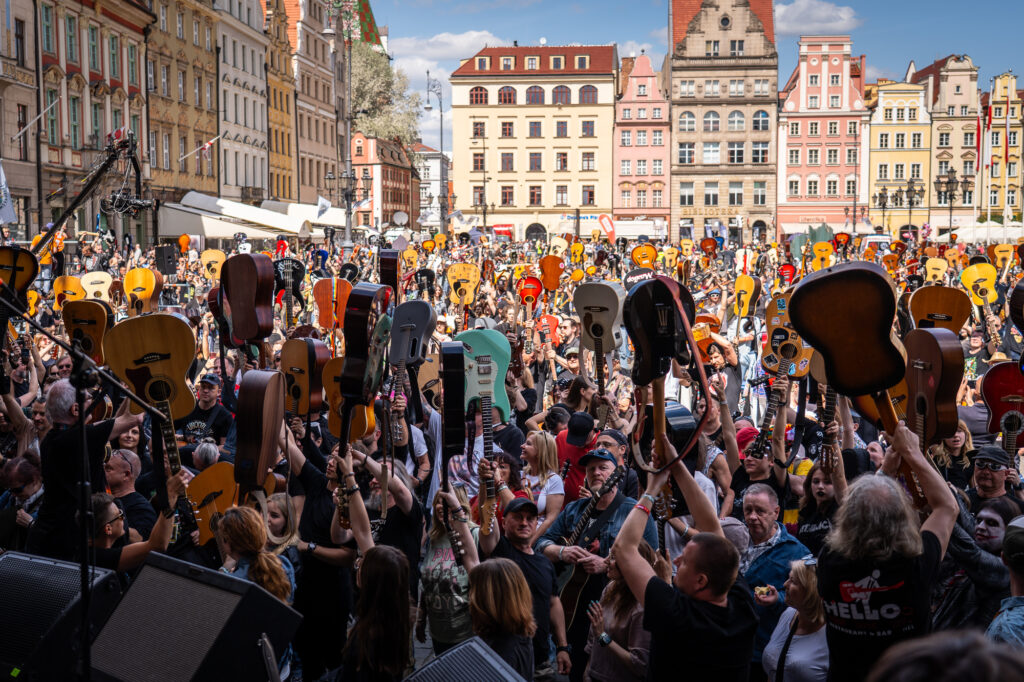 Gitarowy Rekord Świata został zainicjowany przez Leszka Cichońskiego 24 lata temu i od tego czasu przyciąga do Wrocławia tysiące gitarzystów – od profesjonalistów po amatorów i młodych adeptów gitary. To jedno z najbardziej niezwykłych muzycznych wydarzeń w Europie, w którym publiczność przestaje być tylko widownią, a staje się częścią największej gitarowej orkiestry świata. Kiedy kilka tysięcy gitar zaczyna grać jednocześnie, pojawia się wyjątkowe doświadczenie wspólnoty i radości z grania razem. Tę energię pomysłodawca wydarzenia nazywa Uni-Vibe – Uniting Vibration of Music – wspólną wibracją muzyki, która na chwilę sprawia, że tysiące ludzi oddycha tym samym rytmem.