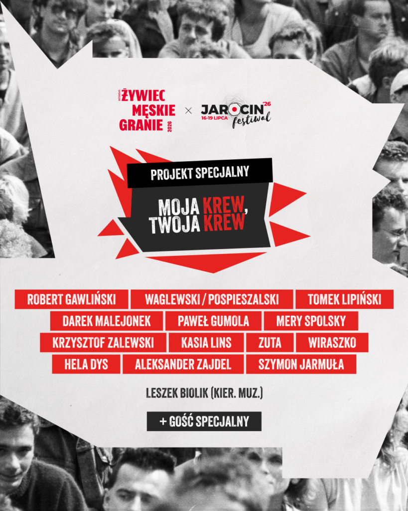 Karty zostały odkryte – znamy skład koncertu „MOJA KREW, TWOJA KREW: MG X JAROCIN”, który zostanie zaprezentowany zarówno podczas Jarocin Festiwal 2026 (16–19 lipca), jak i w ramach trasy Żywiec Męskie Granie 2026.