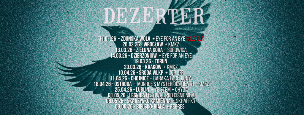 2026, to wspominany 45-ty rok działalności zespołu Dezerter. Ale zespół nie patrzy za siebie, tylko w przód. Dowodem tego jest najnowsza płyta „Wolny wybieg”, która powstawała pomiędzy koncertami zespołu, a nagrana została jesienią 2025, w otwockim The Boogie Town Studio.