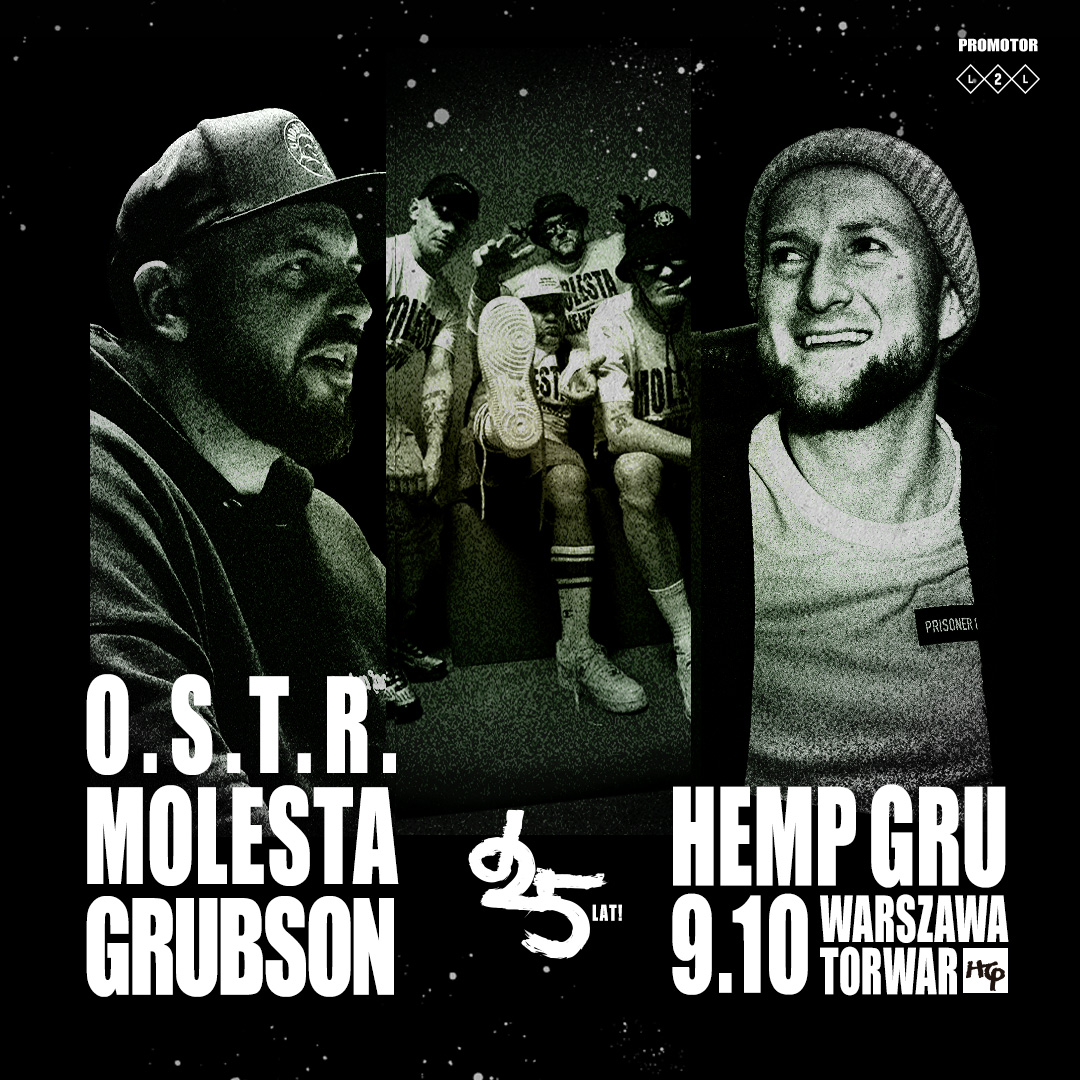 O.S.T.R., Molesta i Grubson to pierwsi goście 25-lecia HEMP GRU w stołecznej hali COS Torwar. Zaproszeni artyści to nie tylko ikony polskiego hip-hopu, ale przede wszystkim sympatycy HG, z którymi łączy ich muzyczna przyjaźń. 9 października zapowiada się więc na wieczór pełen klasyki polskiego rapu, gdzie nie może Was zabraknąć!
